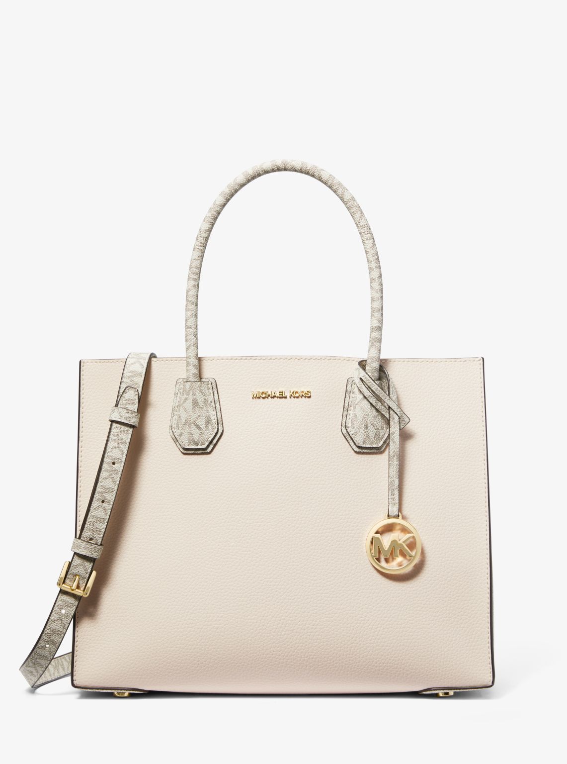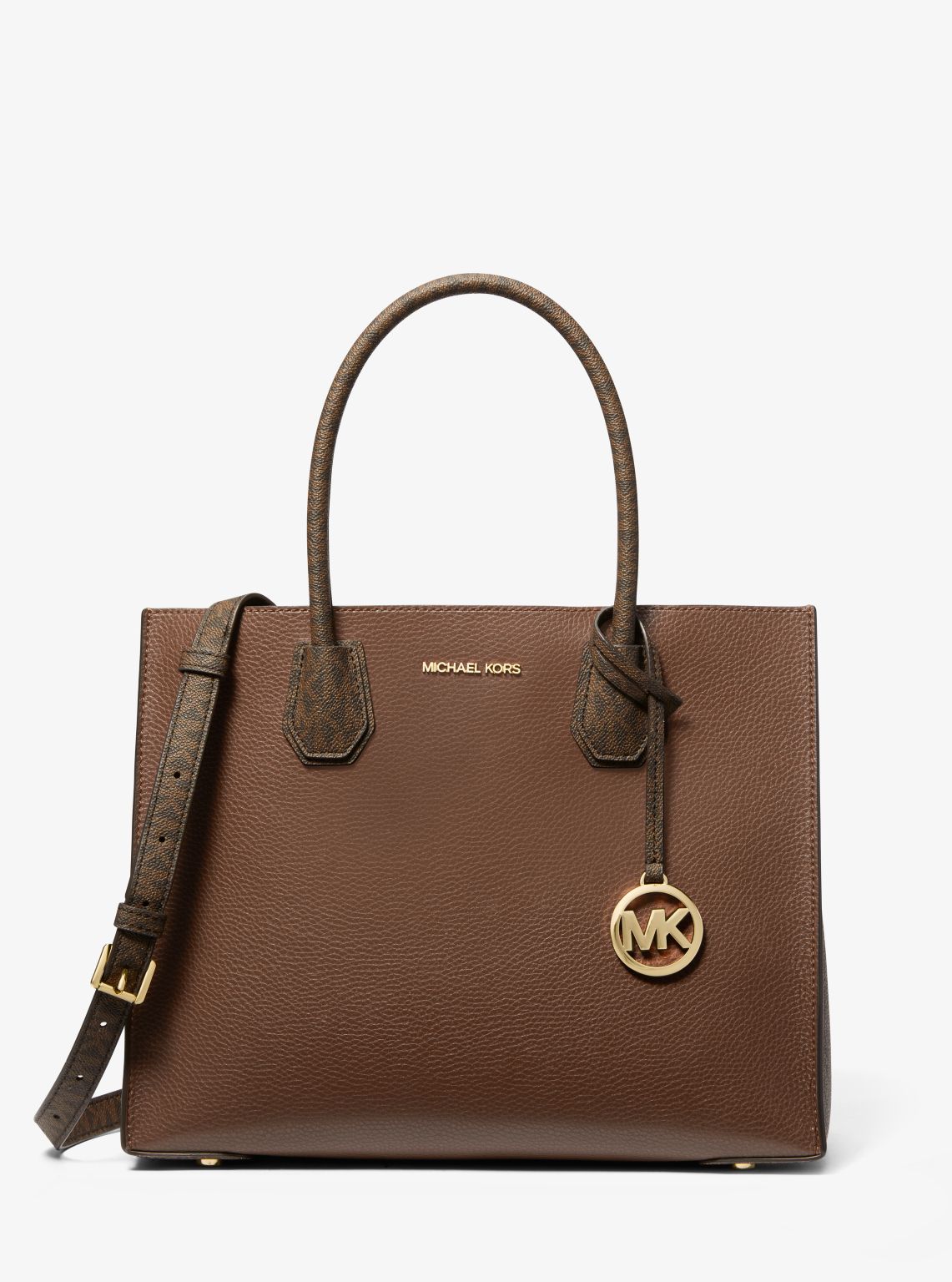 Crafted from Signature-print canvas with leather trim, our iconic Mercer tote bag has been updated with accordion side gussets. The streamlined design features structured top handles and a removable crossbody strap for added versatility, while a median zippered compartment promises safekeeping for smaller items.