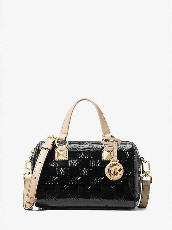 Small Logo Embossed Patent Duffel Crossbody Bag
